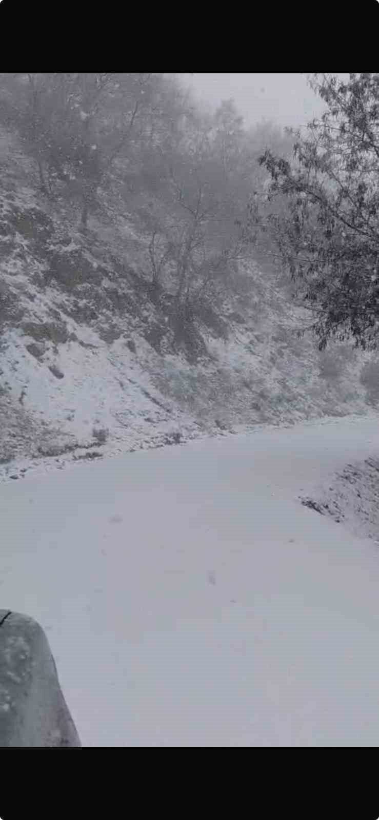 Buldan’daki ormanlık alan kış yağmuruyla beyaza dönüştü