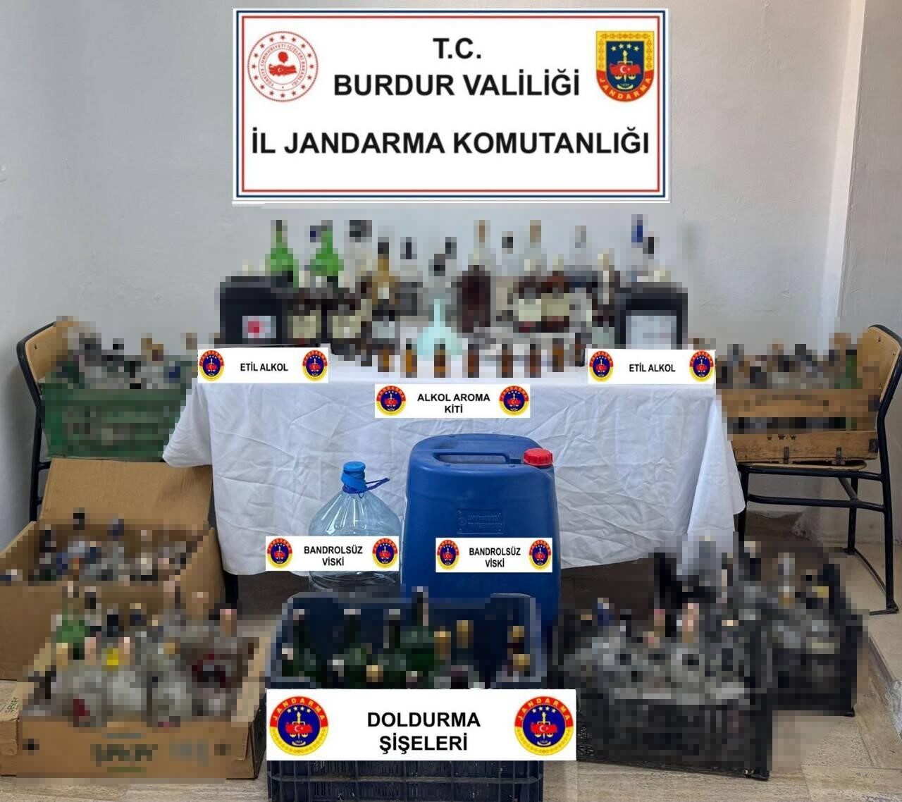 Burdur’da jandarma ekiplerinin gerçekleştirdiği operasyon sonucunda, yasa dışı alkol üretimiyle ilgili birçok malzeme ve litrelerce el yapımı alkol ele geçirildi. Operasyonda toplamda 7 kişi gözaltına alındı.
