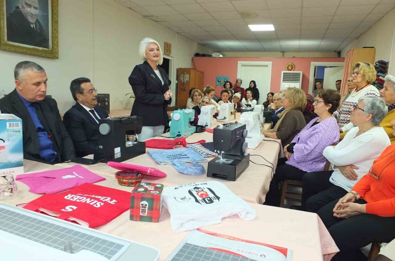 Balıkesir’in Burhaniye ilçesinde, Kaymakam Cumali Atilla, giyim atölyesine 9 adet dikiş makinesi bağışlayan hayırsever Yeşim Meço Davutoğlu’na teşekkür belgesi sundu. Ziyaret sırasında atölye kursiyeri kadınlarla da bir araya gelen Atilla, giyim öğretmeni Özlem Tezcan’dan atölye hakkında bilgi alarak destek vereceği sözünü verdi.