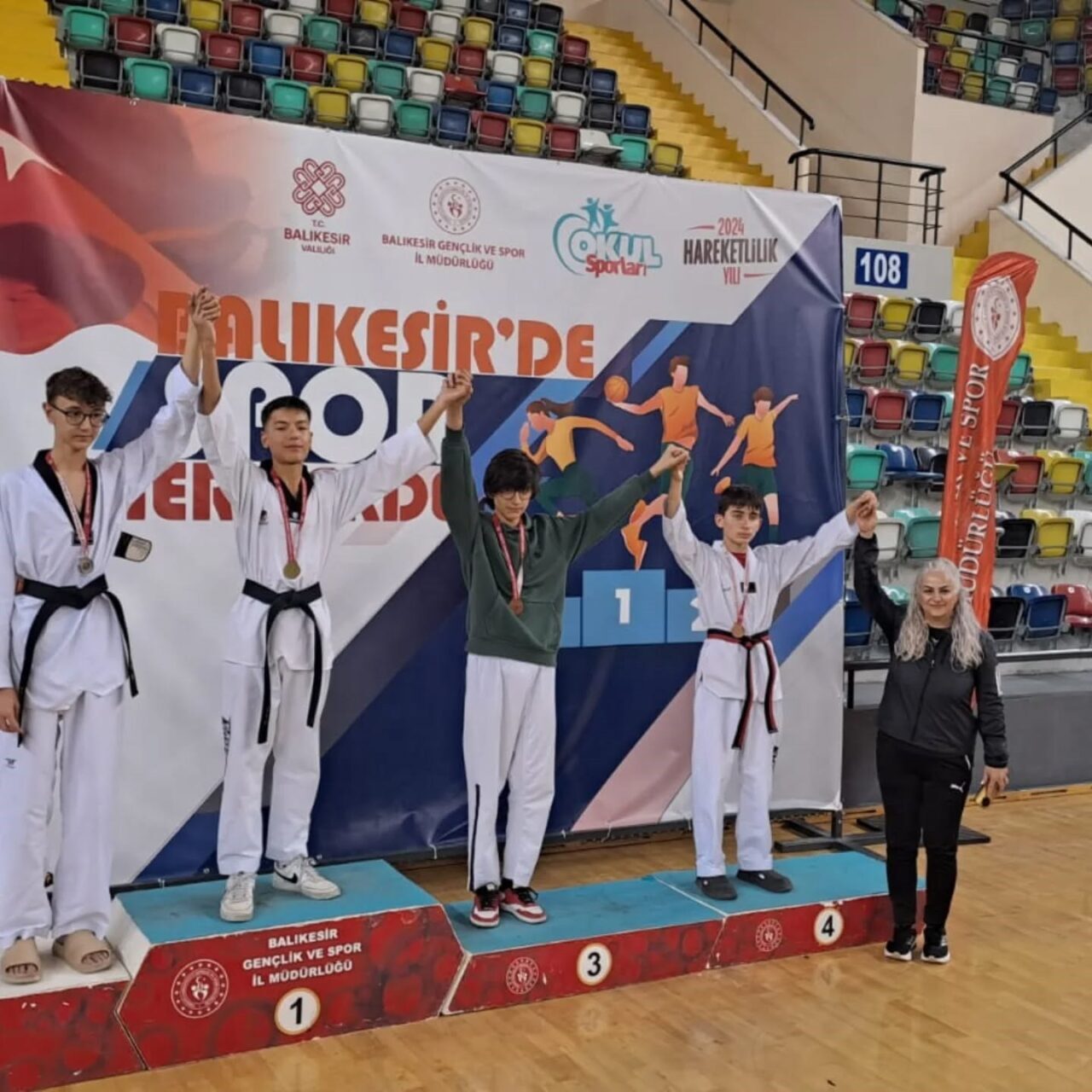 Burhaniyeli Taekwondocu gençler, Balıkesir’de yapılan Taekwondo Yıldızlar, Gençler, Büyükler Balıkesir İl Birinciliği müsabakalarında büyük bir başarı gösterdi. Müsabakalarda, Doğukan Güven, Tuğsan Can, Alihan Cabak, Yunus Değirmenci ve Ali Hami Tuma altın madalya kazanırken, Azra Sivaz ve Yusuf Karaca gümüş madalya, Ahsen Açıkgöz, Nehir Benzek, Sümeyye Daş ve Ahmet Selim Elçi de bronz madalya sahibi oldu. Sporcuları tebrik eden antrenör Yaşarnaz Güven, “Madalya alan ve alamayan tüm sporcularımı ve büyük emek veren değerli velilerimi kutluyorum. Bu gurur bizim. Darısı daha büyük başarılara inşallah” şeklinde konuştu.