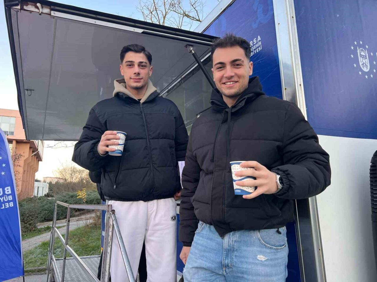 Soğuk kış günlerinde üniversite öğrencilerini yalnız bırakmayan Bursa Büyükşehir Belediyesi, Bursa Uludağ Üniversitesi ve Bursa Teknik Üniversitesi’nde eğitim gören öğrencilere her sabah ücretsiz sıcak çorba ve ekmek ikram ederek hem moral veriyor hem de destek sağlamış oluyor.