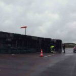 Bursa İstanbul otobanı Orhangazi Gebze arasındaki bir viyadükte tır fırtınanın etkisiyle devrildi.