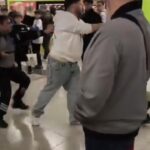 Genç, güvenlik görevlisinin saldırısına karşılık vererek yumruk attı. O sırada çevrede bulunan vatandaşlar, kavgayı müdahale ederek ayırmaya çalıştı fakat tarafların ayrılması pek kolay olmadı. Genç, güvenlik görevlisinden kaçmaya çalışırken yere düşerek düşme anı da dikkat çekti. Yaşanan ilginç anlar, olay neticesinde bazı insanların cep telefonlarıyla kayda alındı.