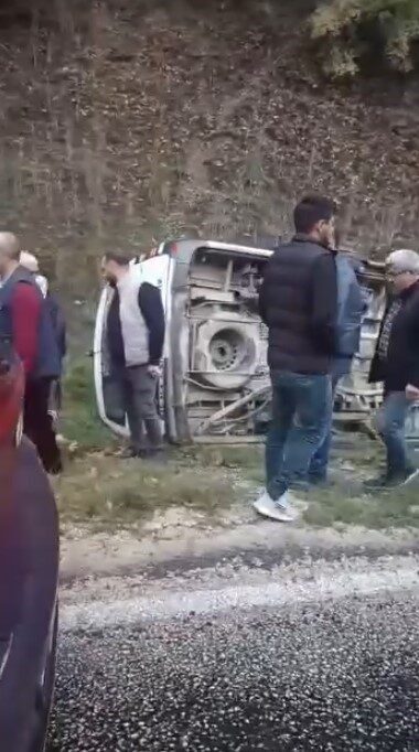 Bursa’nın Orhaneli ilçesinin Kapıkaya rampasında meydana gelen olayda, seyir halinde olan bir yolcu minibüsü, henüz tespit edilemeyen bir sebepten dolayı kontrolden çıktı ve devrildi. Kaza sonucunda minibüs içerisindeki 8 kişi hafif yaralar aldı.