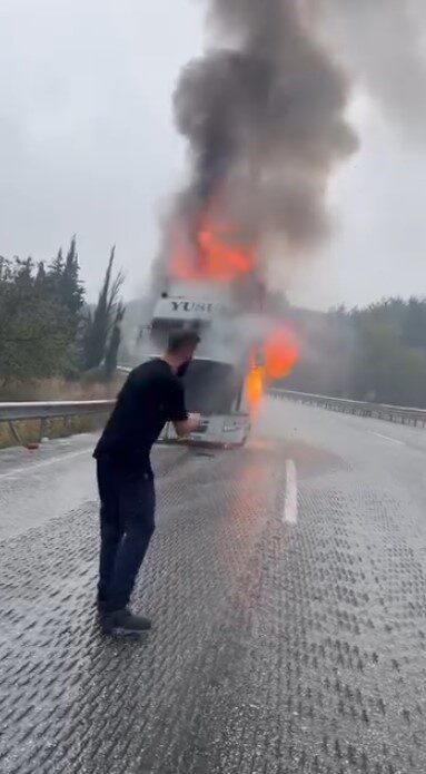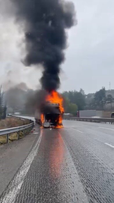 Bursa’dan Yalova yönüne ilerleyen tırın sürücüsü, motor bölümünden yükselen alevleri gördükten sonra aracı hemen kenara çekti. İlk aşamada, yangınla kendi imkânlarıyla mücadele etmeye çalışan sürücü, alevlerin hızla büyümesi üzerine profesyonel yardım çağırdı. Olay yerine ulaşan itfaiye ekipleri, yangına müdahalede bulunarak alevleri kontrol altına aldı.