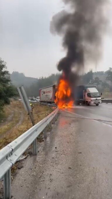 Bursa-Yalova Yolunda Tır Yangını