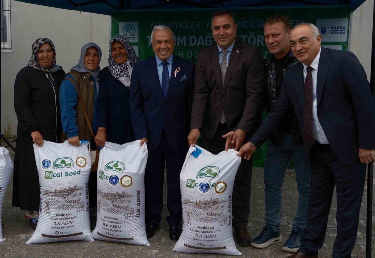 Bursa’nın Nilüfer bölgesinde gerçekleştirilen bir proje ile hayvancılığı desteklemek amacıyla toplamda 300 çiftçiye İtalyan çimi tohumu dağıtıldı.