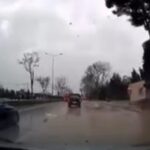 Mudanya yolunda seyreden bir sürücü, kendisini uçan parçalarla korunmaya çalışırken buldu. Aracın arka kamerasında görülen görüntülerde, ana yolda kimsenin bulunmadığı bir sırada fırtınanın etkisiyle bir ağacın yola devrildiği kaydedildi.