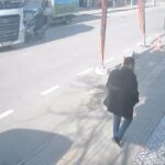 Bursa’da anayolda motokurye tıra çarparak yaralandı, o anlar güvenlik kamerasında görüntülendi.