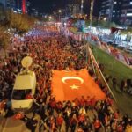 Bursa’da, Cumhuriyet’in 102. yılı, Bursa Büyükşehir Belediyesi ve Nilüfer Belediyesi’nin ortak düzenlediği “Cumhuriyet Yürüyüşü” ile büyük bir katılımla kutlandı. On binlerce Bursalı, ellerindeki Türk bayrakları ve Atatürk posterleriyle yürüyüşe katılarak bayram coşkusunu paylaştı. Yürüyüş sonrası, popüler sanatçı Edis sahne alarak etkinliğe katılanlara unutulmaz anlar yaşattı. Katılımcıların cep telefonlarıyla oluşturduğu ışık gösterisi, dron ile havadan görüntülendi.