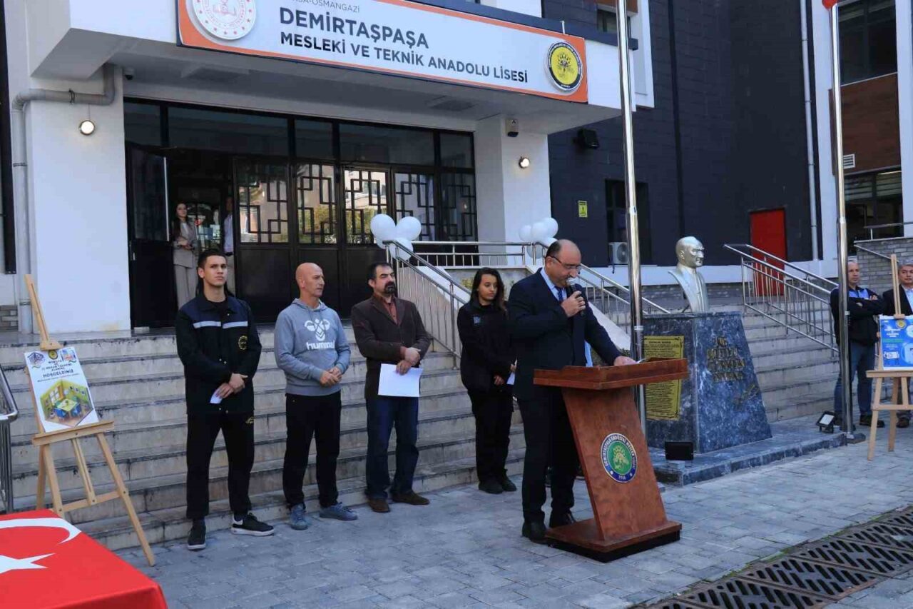 Tören, İstiklal Marşı ile saygı duruşunun ardından başladı. Programa, Osmangazi İlçe Milli Eğitim Müdürü Metin Sezer, İlçe Milli Eğitim Şube Müdürü Hasan Ali Tüzen, DEMSİAD Yönetim Kurulu Başkanı Alptekin Şahintürk, okul müdürü Celal Ulusoy ve Demirtaşpaşa Meslek Lisesi Başkanı Atilla Zeytinciler de iştirak etti.