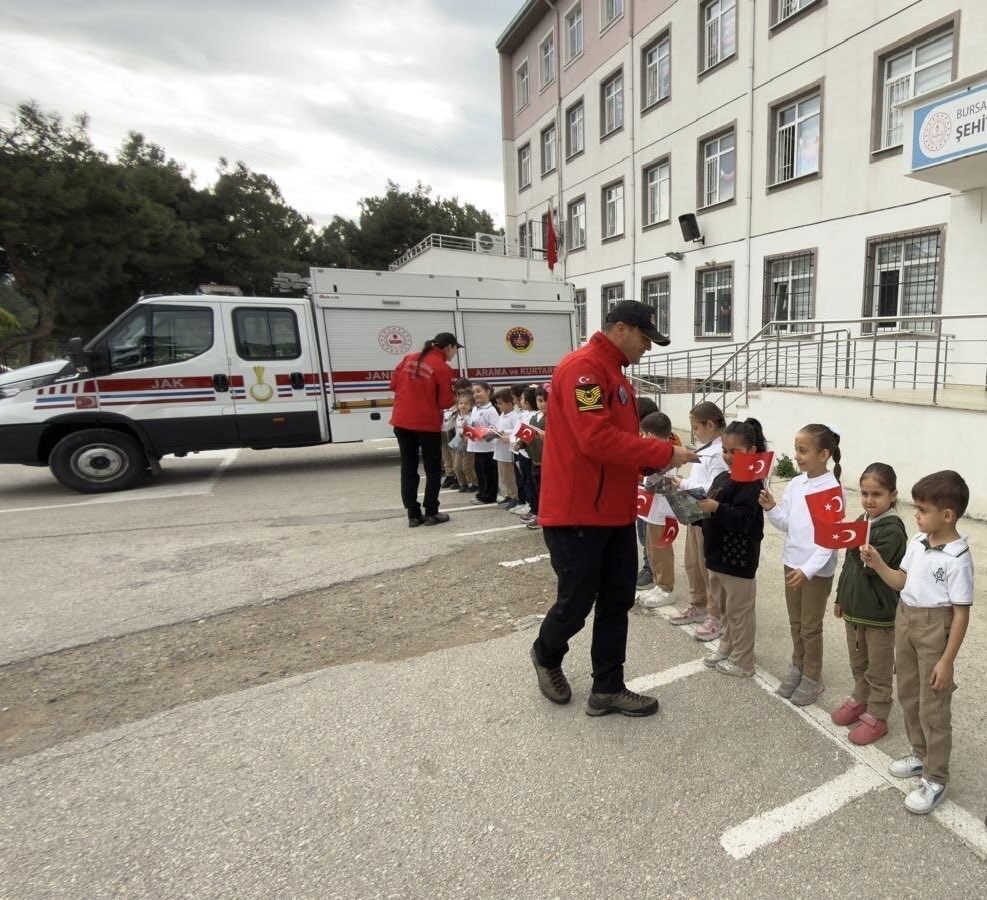 Bursa İl Jandarma Komutanlığı’na bağlı Jandarma Arama Kurtarma (JAK) timleri, öğrencilere yönelik düzenlenen farkındalık eğitimleri çerçevesinde iki okula bilgilendirme ziyareti gerçekleştirdi.