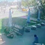 Osmangazi ilçesinin Ulu Mahalle bölgesinde, bir kafede çay içen iki kişi, aniden yerinden kopan bir tabelanın altında kalmaktan saniyelerle kurtuldu. O sırada yaşanan bu olay, kafe güvenlik kameraları tarafından kaydedildi.