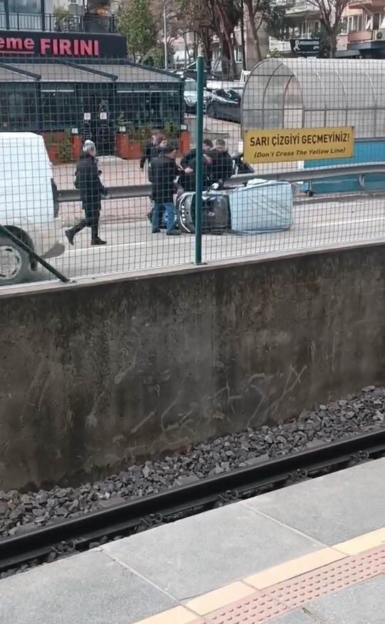 Bursa’da şiddetli rüzgar, mini otomobili devirdi. Olayda kısa süreli bir panik yaşandı. Bursa’nın Osmangazi ilçesinde Sırameşeler Metro İstasyonu yakınlarında, Ankara istikametinde gerçekleşen olayda, şiddetli rüzgarın etkisiyle seyir halindeki mini otomobil devrilerek yan yattı. Mini otomobilde bulunan sürücü, çevredeki vatandaşların hızlı müdahalesiyle kurtarılarak bulunduğu yerden çıkarıldı. O anlar cep telefonu kamerasıyla kaydedildi.