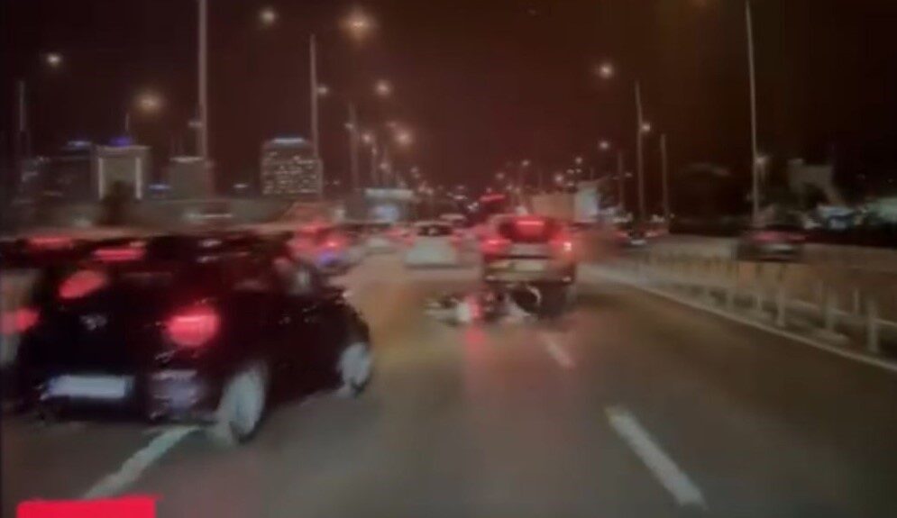 Bursa’nın merkezi konumundaki Nilüfer ilçesinde, şerit değiştiren bir otomobilin çarpması sonucu bir motosiklet sürücüsü hafif yaralandı. Kaza anı güvenlik kameralarına yansıdı.