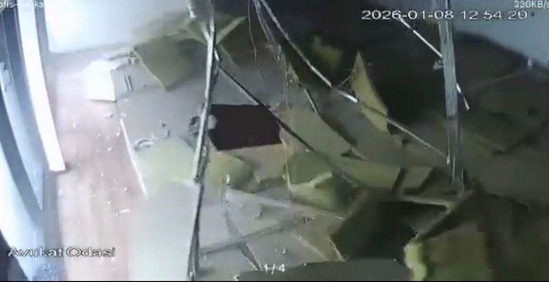 Edinilen bilgilere göre, merkez Osmangazi ilçesi İstanbul yolu üzerinde yer alan bir plazanın iç kısmındaki asma tavan, şiddetli rüzgarın etkisiyle büyük bir gürültüyle çöktü. O sırada içeride bulunan vatandaşlar saniyelerle kurtulurken, yaşanan panik anbean güvenlik kamerası tarafından kaydedildi. Görüntülerde, vatandaşların tavanın çökmesiyle birlikte hızla kaçtığı ve kıl payı kurtulduğu görüldü.