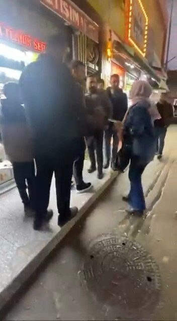 Olay sırasında, dükkanın önünde bulunan bir kadın müşterinin dükkandan ayrılmasını sağlamak amacıyla bölgedeki esnaf kendisini ikna etmeye çabaladı. Ancak, dükkanın içindeki esnafa bir müşteri tarafından hakaret edilmesi sonucunda, esnaf kendini tutamayarak dışarıdan bağırmaya başladı.