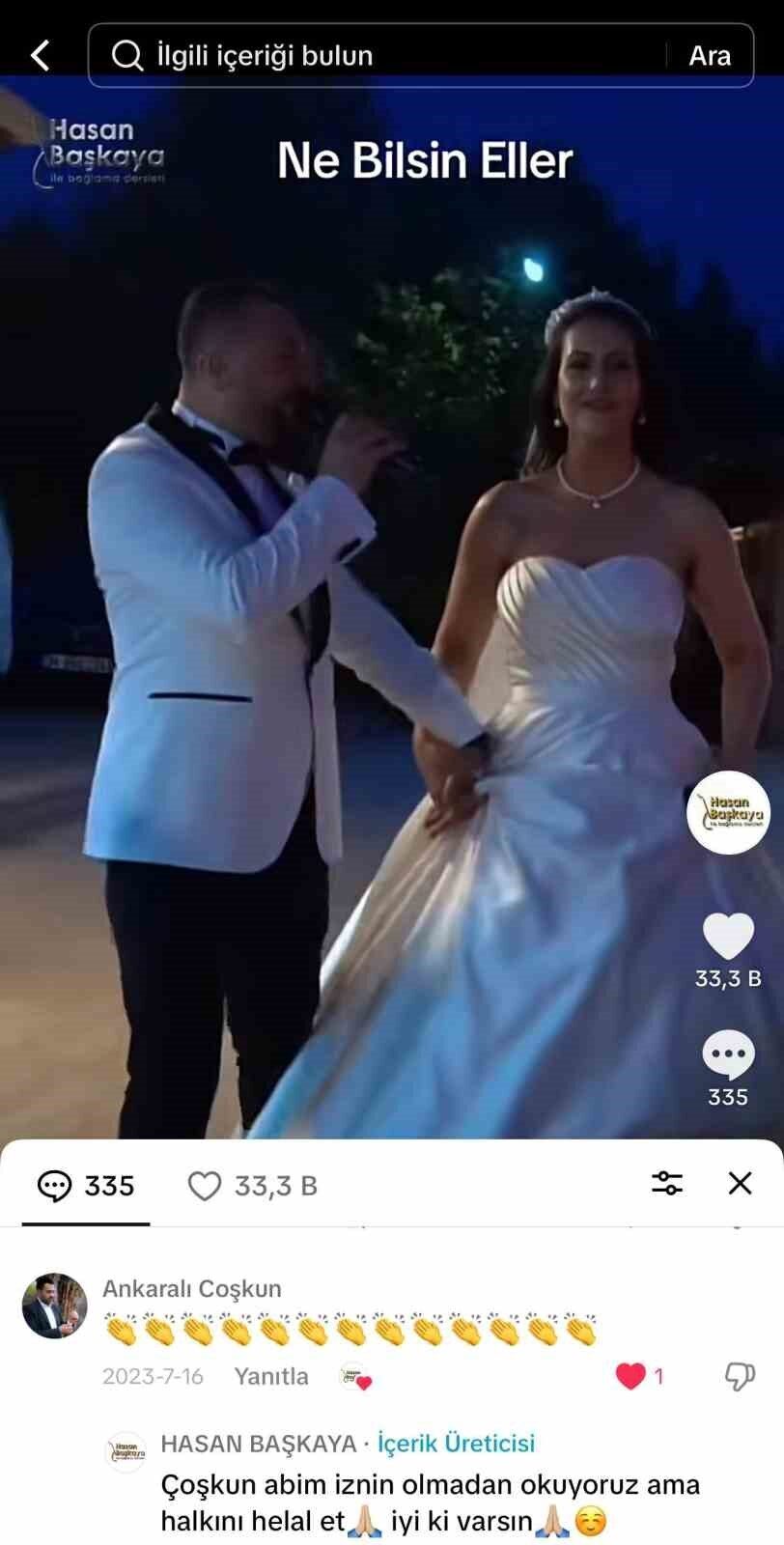 MÜZİK TUTKUNU BAŞKAYA ÇİFTİ, DÜĞÜNLERİNDE ANKARALI COŞKUN’A AİT ‘NE BİLSİN ELLER’ ŞARKISINI SÖYLEDİ