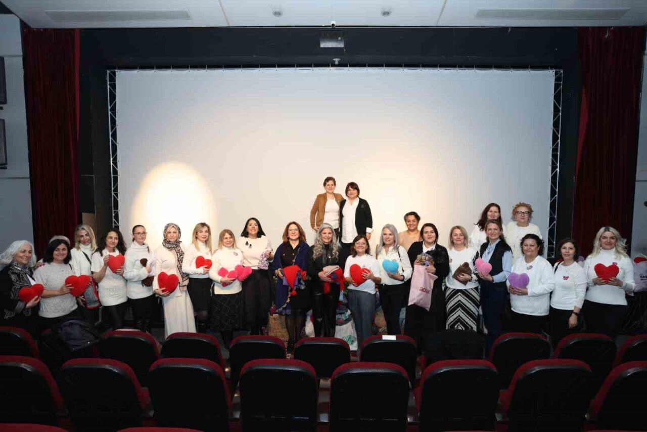 Etkinlikte, Harmancık Belediye Başkanı Haşim Ali Arıkan’ın eşi Melda Arıkan’a da örgüden kalp hediye edildi.