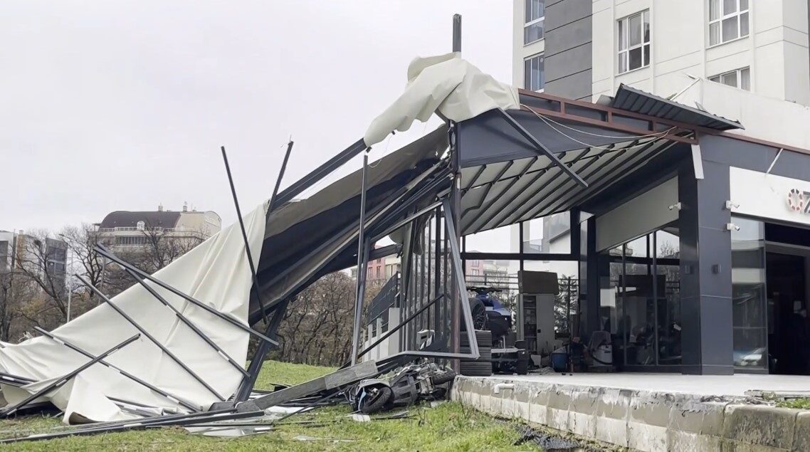 Bursa’da Fırtına Çatı Uçurdu, Galeri Önünde Zarar Verdi