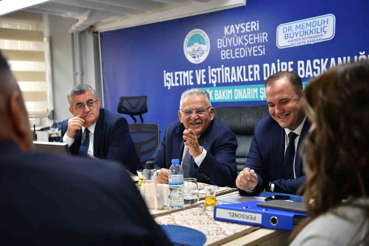 Kayseri Büyükşehir Belediye Başkanı Dr. Memduh Büyükkılıç, İşletme ve İştirakler Daire Başkanlığı bünyesindeki teknik bakım ve onarım ekipleriyle bir araya gelerek, kente sunulan hizmetlerle ilgili fikir alışverişinde bulundu.