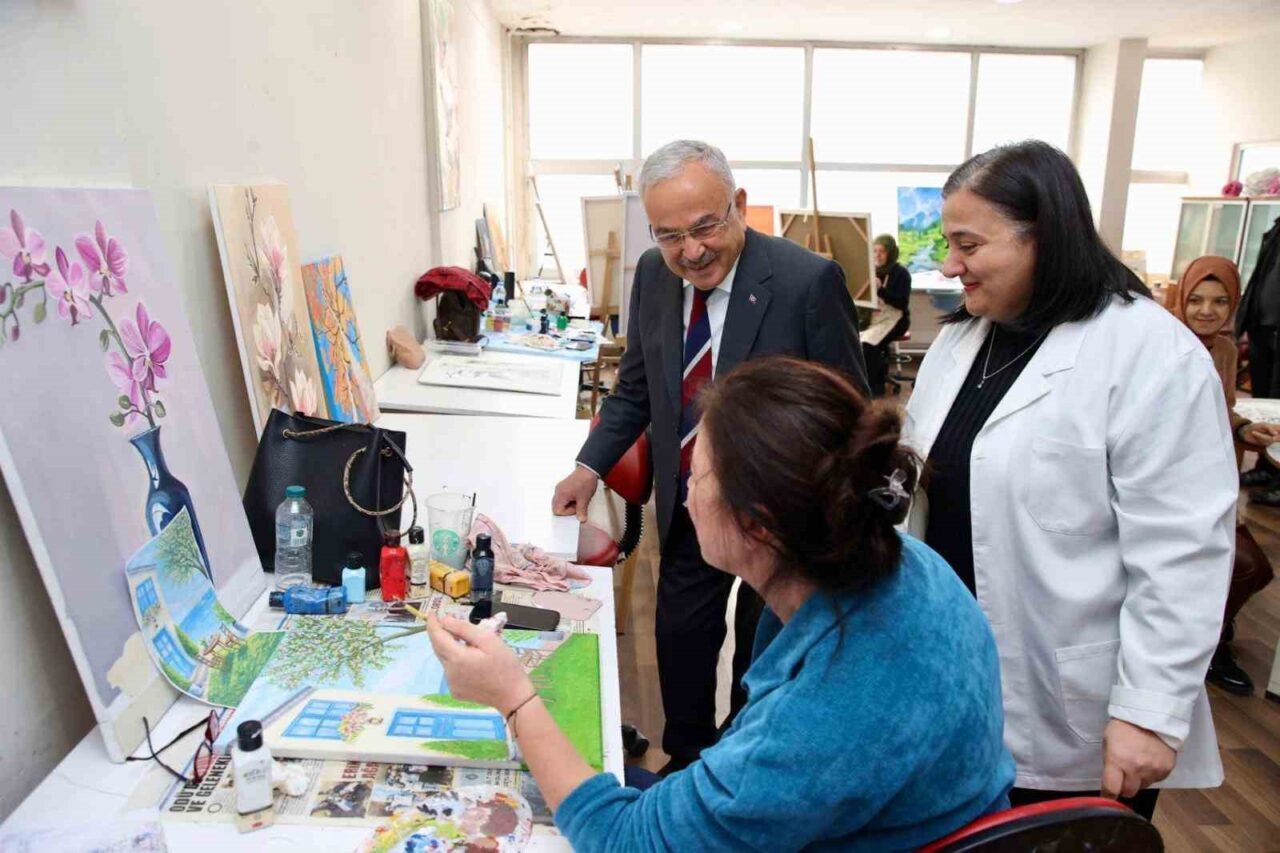 Büyükşehir Belediye Başkanı Dr. Mehmet Hilmi Güler, emeğin ve yeteneğin sanata dönüştüğü, kursiyerlerin ev ekonomilerine katkı sunduğu Büyükşehir Belediyesi Meslek ve Sanat Eğitimi Kursları’nın (ORMEK) Altınordu şubesini ziyaret etti. Kursiyerler ve eğitmenlerle bir araya gelen Başkan Güler, yapılan çalışmaları detaylı bir şekilde inceledi.