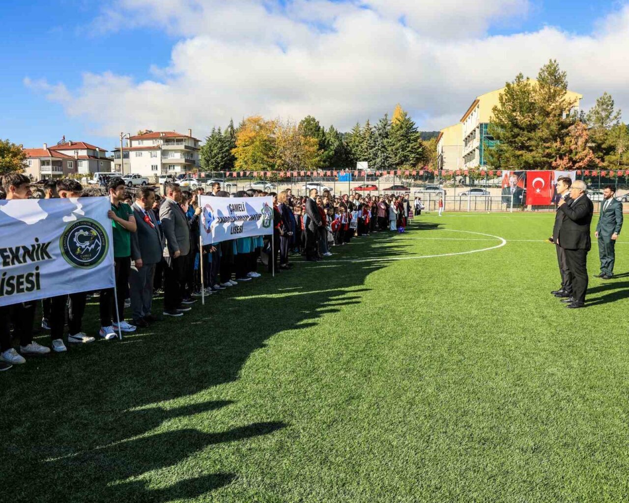 Törenin başında Kaymakam Mustafa Çelik ve Belediye Başkanı Cengiz Arslan, öğrencilere ve halka Cumhuriyet Bayramı’nı kutladı. Ardından, 29 Ekim 1923’te Türkiye’nin bağımsızlık iradesini ortaya koyan Ulu Önder Gazi Mustafa Kemal Atatürk ve silah arkadaşları, milli mücadelede canlarını veren kahramanlarımız ile şehitlerimiz için saygı duruşunda bulunuldu ve İstiklal Marşı okundu.