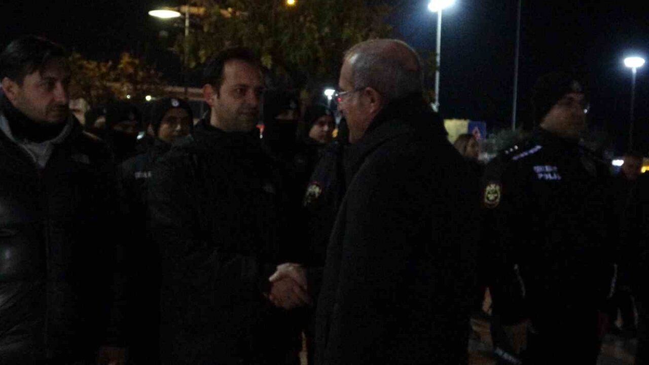 Görevli personelin 7/24 esasına göre çalıştığını belirten Vali Toraman, “İçişleri Bakanlığı’nın talimatları doğrultusunda sabah saatlerinden itibaren 24 saat esasına dayalı tedbirlerimizi önceden planlamıştık. Bu çerçevede 2 bin 628 kolluk personeli sahada görevli. 583 ekip olarak çalışıyorlar ve 577 araçla devriye hizmetlerine katılarak bu faaliyetlerini yürütüyorlar. Deniz de Sahil Güvenlik Grup Komutanlığımız, 8 yüzer gemisi ve botuyla görevini icra ediyor. Gün boyunca Tarım İl Müdürlüğü’ne bağlı ekipler gıda ve yiyecek denetimlerini yaptılar ve yapmaya devam ediyorlar. Ticaret İl Müdürlüğü’ne bağlı ekiplerimiz de fiyat etiket denetimlerini gerçekleştirmekte. Bunun yanı sıra 112 servisimiz 24 saat esasına göre görevde. Her türlü ihbarı hızlı bir şekilde değerlendiriyorlar. Hastanelerimizde acil birimlerimiz, arkadaşlarımız her zaman 24 saat esasına göre görevlerinin başındalar. Ambulanslarımız ve ekiplerimiz ihtiyaç olduğunda hızlı bir şekilde müdahale ediyorlar. İnşallah 2026 yılı, başta Çanakkale’miz olmak üzere ülkemize sağlıklı, huzurlu ve mutlu bir yıl olarak geçer. Biz vatandaşımızın huzuru için, can ve mal emniyeti için 7/24 görevimizin başındayız” ifadelerini kullandı.