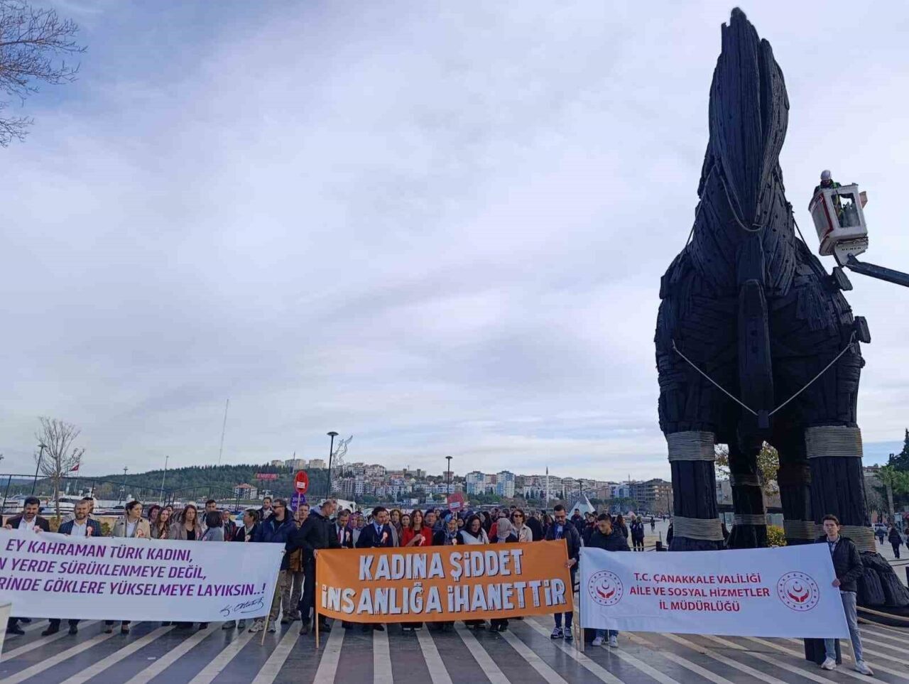 Çanakkale’de 25 Kasım Kadına Yönelik Şiddete Karşı Uluslararası Mücadele Günü vesilesiyle bir farkındalık yürüyüşü gerçekleştirildi. Aile ve Sosyal Hizmetler İl Müdürlüğü’nün organizasyonunda düzenlenen etkinlik, önemli bir mesaj vermek amacıyla katılımcılardan yoğun ilgi gördü.