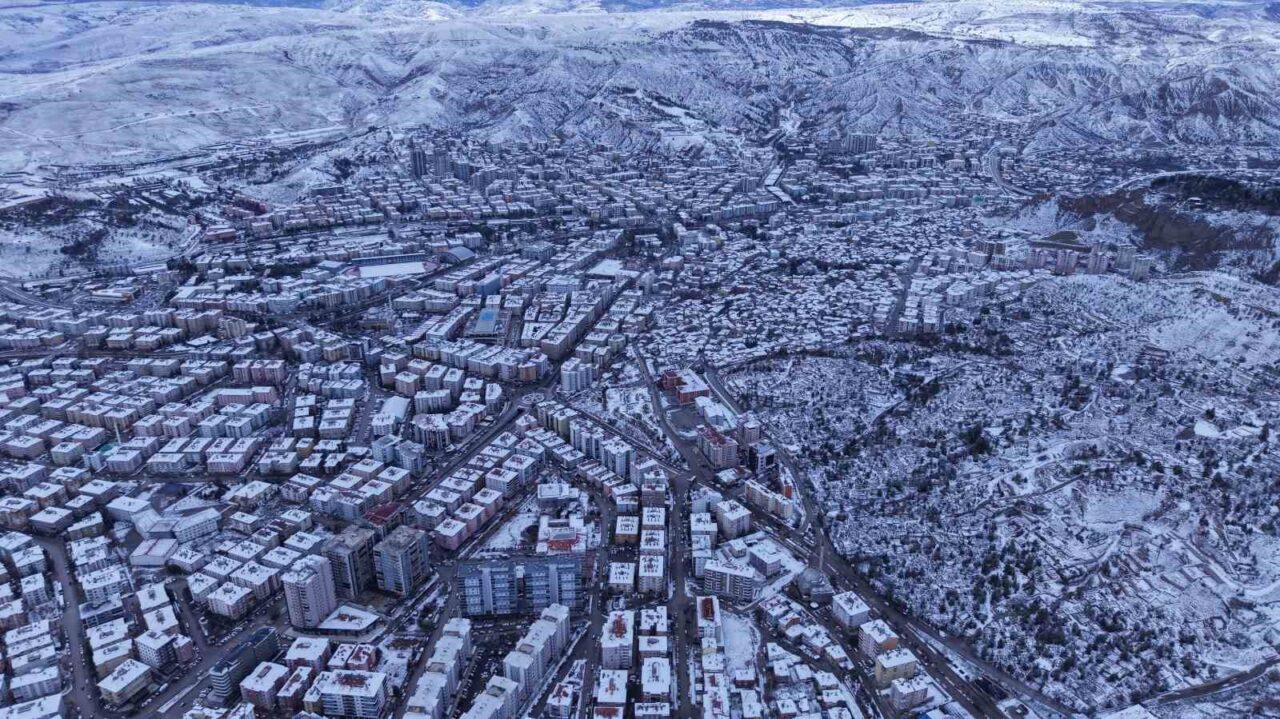Çankırı’da Kar Yağışı ile Beyaza Bürünmüş Kent Merkezi Havadan Görüntülendi