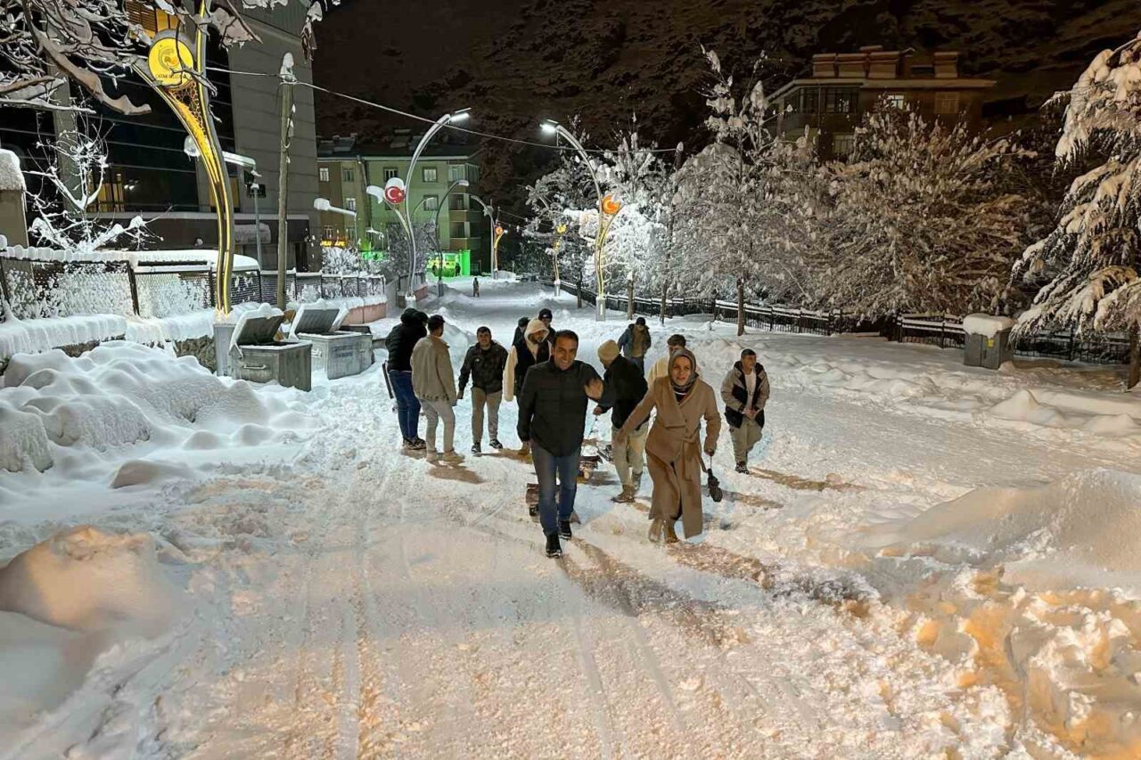 Öğrencilerin daveti üzerine kayak etkinliğine katılan Çatak İlçe Milli Eğitim Müdürü Hamdi İnan da, kızakla kayarak öğrencilerin sevincine ortak oldu. Müdür İnan’ın öğrencilerle birlikte kayması, hem öğrenciler hem de ilçe sakinleri tarafından ilgiyle karşılandı. Soğuk havaya rağmen neşenin hâkim olduğu etkinlikte öğrenciler, kar tatilini unutulmaz bir anıya dönüştürdü.
