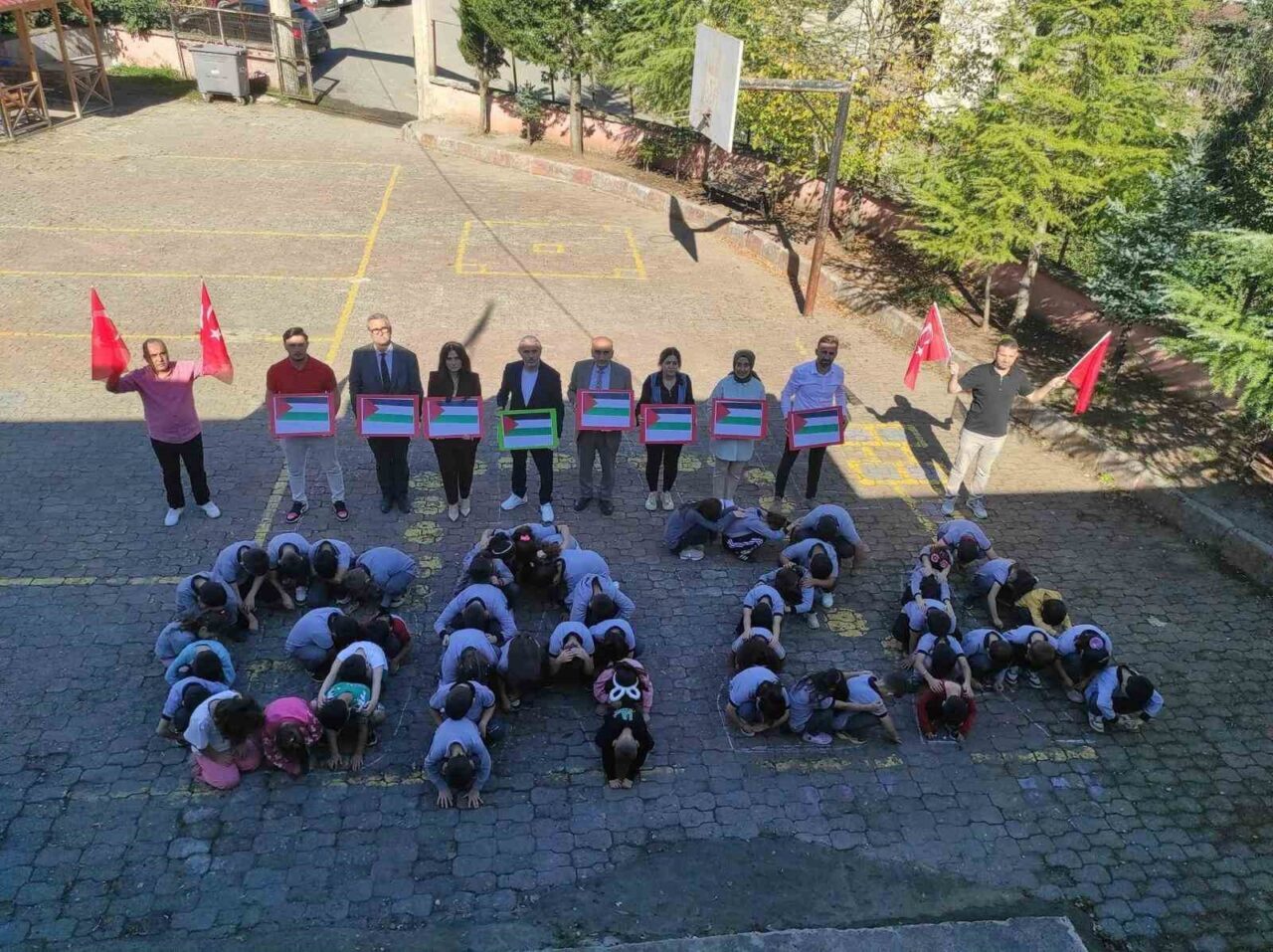 Ordu’nun Çatalpınar ilçesine bağlı Kıran Mahallesi İlkokulu’nda öğrenciler, Filistin ve Gazze’de devam eden olaylara dikkat çekmek için özel bir etkinlik düzenledi. Okul bahçesinde hazırlanan Türkiye ve Filistin bayraklarının yer aldığı görseller, minik yüreklerin umut dolu mesajlarını iletti.
