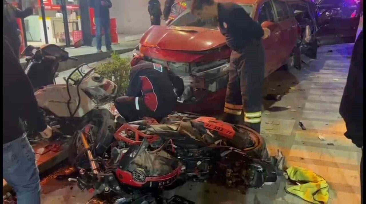 Edinilen bilgilere göre, M.Ç. isimli sürücünün kontrolündeki otomobil, seyir halindeyken şerit ihlali yaparak hızla ilerleyen Y.K. yönetimindeki araca çarptı. Çarpışmanın etkisiyle park halinde bulunan iki otomobil ve üç motosiklet de kazadan etkilendi. Toplamda yedi aracın karıştığı bu kaza sonucunda E.D. ve H.Ö. isimli iki kişi hafif yaralarla olay yerinde sağlık ekipleri tarafından ilk müdahaleye tabi tutuldu ve hastaneye kaldırıldı. Yaralıların sağlık durumlarının iyi olduğu ve hayati tehlikelerinin bulunmadığı belirtildi.