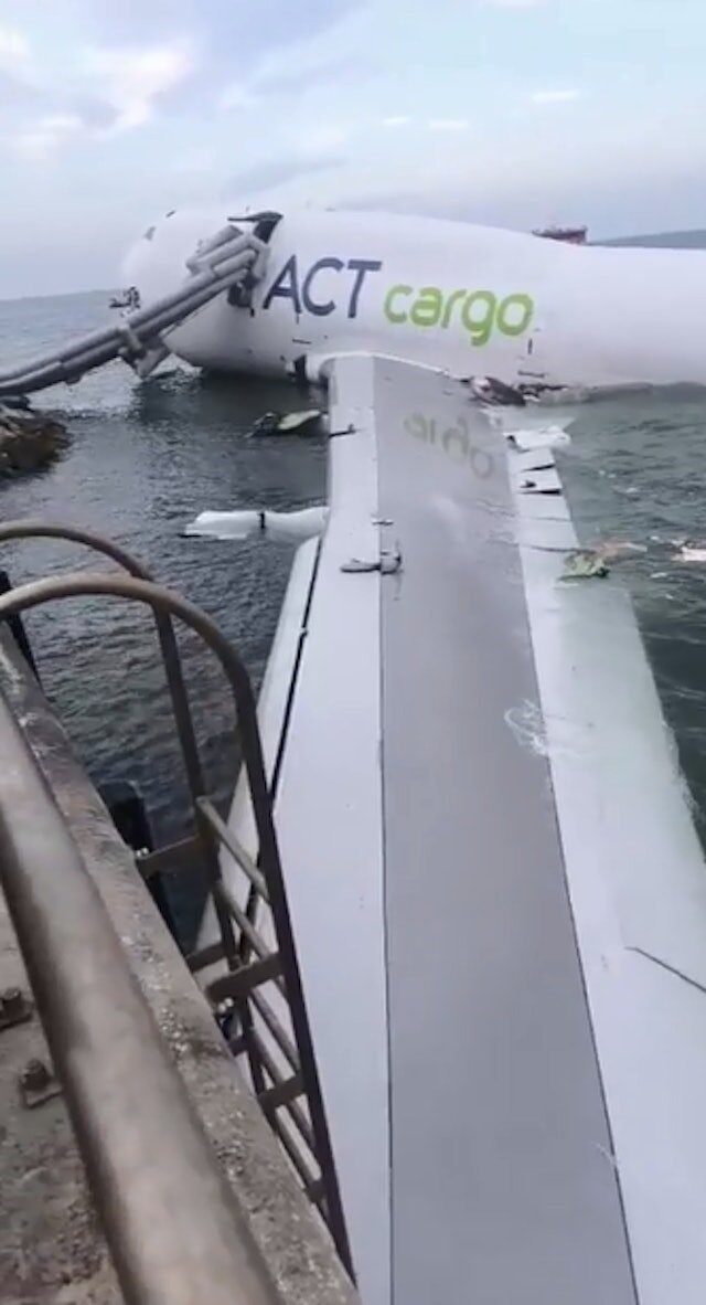 HONG KONG’A İNİŞİ SIRASINDA PİSTTEN ÇIKAN KARGO UÇAĞI DENİZE SÜRÜKLENDİ