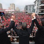 Seçim sürecine girdiklerini söyleyen Özel, “Tarihin en uzun, en kalabalık, en mücadeleci seçim sath-ı mailindeyiz. Bugün seçimin 298’inci günü. Çok kaçsalar bininci güne kadar kaçarlar. Gerekirse bin günlük seçim kampanyası neferi olmaya var mısınız? Ekrem Başkan yerine cumhurbaşkanı adaylığına var mısınız? Kapı kapı gezmeye, köy gezmeye, bulup konuşup ikna etmeye, oyları teker teker toplamaya var mısınız? Yollarda, sokaklarda, köylerde ve fabrikalarda birlikte yürüyecek miyiz? Hadi o zaman yürüyelim arkadaşlar” diye konuştu.