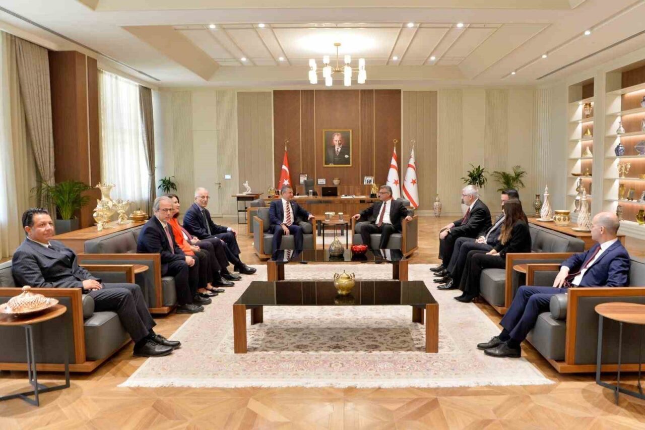 KKTC’deki resmi ziyareti çerçevesinde çeşitli temaslar gerçekleştiren Özgür Özel ve beraberindeki heyet, Cumhuriyet Bayramı kutlamaları kapsamında Cumhurbaşkanı Erhürman ile bir araya geldi. Ziyaret esnasında Cumhurbaşkanı Erhürman, kabulde duyduğu memnuniyeti dile getirirken, Özel de Kıbrıs Türk halkının 15 Kasım Cumhuriyet Bayramı’nı kutlayarak, geçtiğimiz ay gerçekleştirilen cumhurbaşkanlığı seçimlerindeki başarısından ötürü Erhürman’ı bir kere daha tebrik etti.