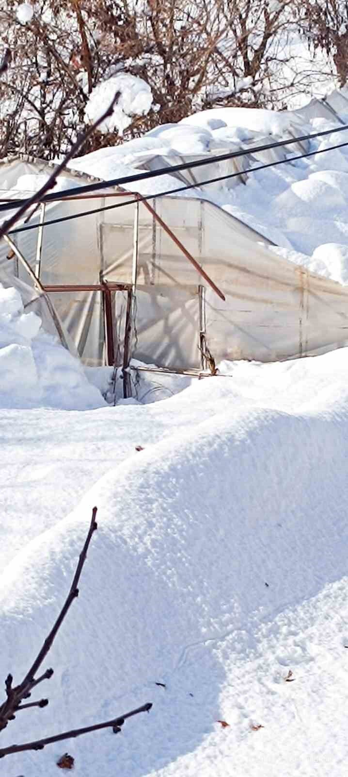 Çimenli köyünde geçimini seracılıkla sağlayan Necati Eser’e ait iki ayrı sera, biriken karın ağırlığına daha fazla dayanamayarak kullanılamaz hale geldi. Seralarda büyük çapta hasar meydana gelirken, üretici yetkililerden destek beklediğini dile getirdi.