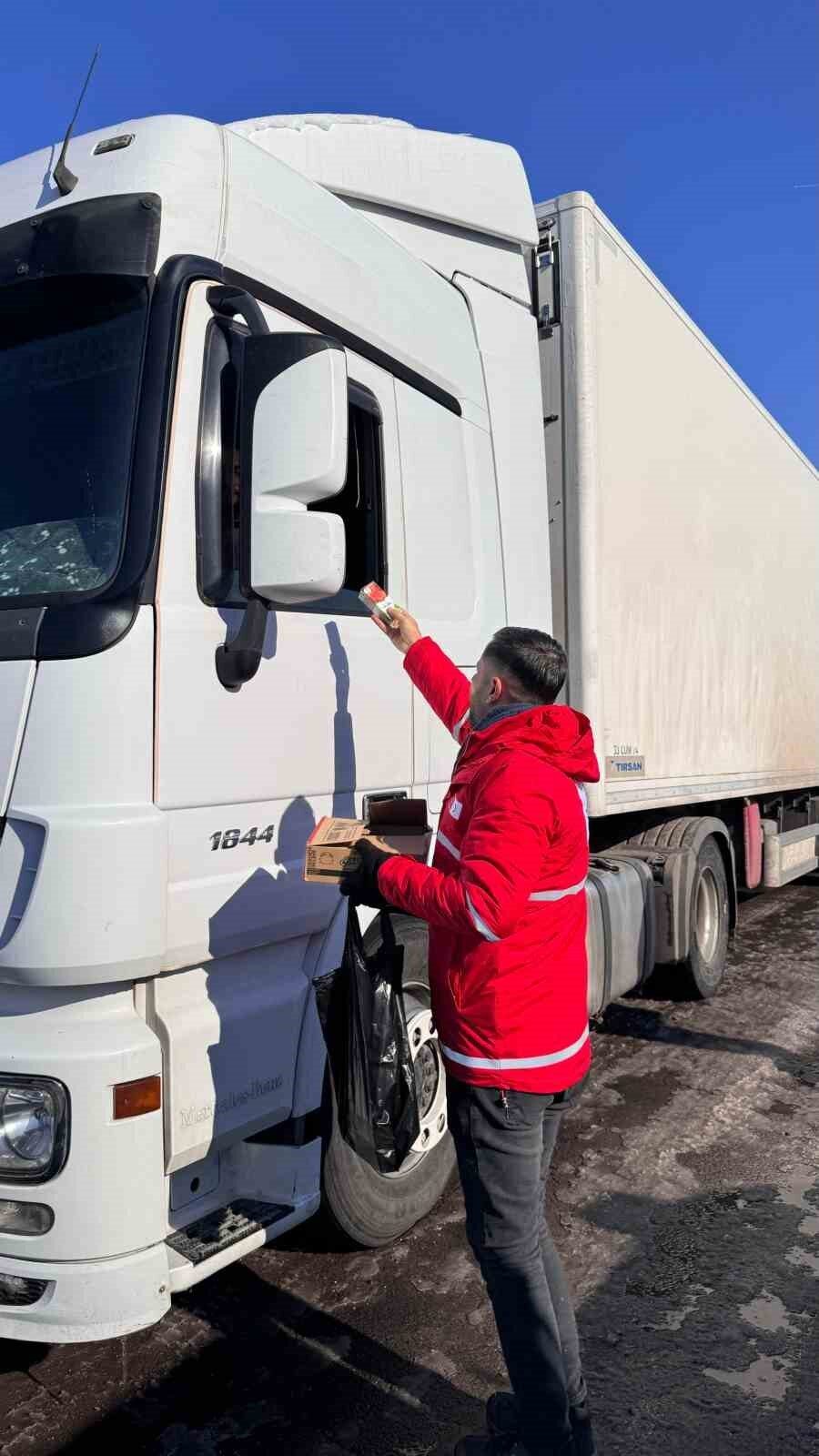 Şırnak’ın Cizre ilçesinde etkili olan yoğun kar yağışı ve buzlanma nedeniyle ulaşıma kapanan Cizre-Nusaybin karayolunda mahsur kalan tır şoförlerinin yardımına Cizre Kızılay Şubesi koştu.