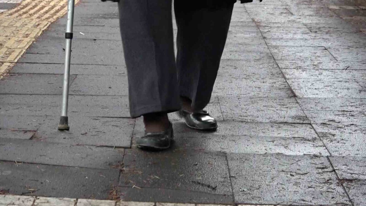 MAAŞINI ÇEKMEK İÇİN BANKAYA GİRECEK ANNESİNİN KARA LASTİK AYAKKABISININ YAĞMUR NEDENİYLE ÇAMURLU OLDUĞUNU FARK EDEN TESELEK, O HALDE İÇERİ ADIM ATMASINI İSTEMEDİ. KALDIRIMDA BİRİKEN YAĞMUR SUYUYLA AYAKKABIYI SİLİP ÇAMURDAN TEMİZLEYEN EVLADIN O ANLARINI BİR VATANDAŞ KAMERAYLA GÖRÜNTÜLEDİ.