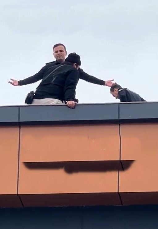 H.C. adlı kapıcı, çatıda atlama niyetinde olduğunu ifade edince, durumu değerlendiren güvenlik güçleri bölgeye çok sayıda polis, itfaiye ve sağlık ekibi yönlendirdi. Yüksekten atlama ihtimaline karşı, itfaiye ekipleri binanın etrafına güvenlik branda yerleştirerek önlem aldı.