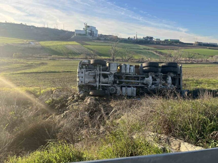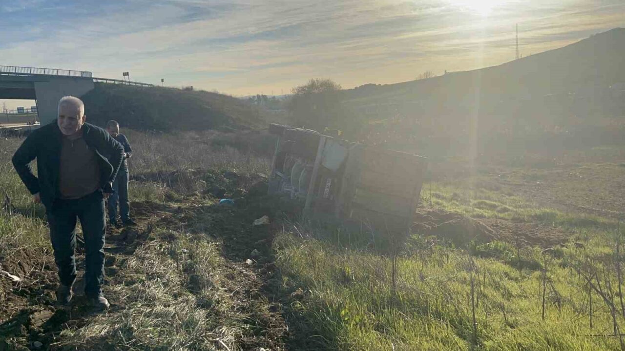Hatip Mahallesi Çorlu Çevre Yolu’nda, Karatepe mevkiinde meydana gelen kazada, Süleymanpaşa yönünde ilerleyen Mehmet Kopuz’un kullandığı kum yüklü hafriyat kamyonu, sollama yapmaya çalışırken sürücünün kontrolünden çıktı. Bariyerlere çarparak metrelerce sürüklenen kamyon, nihayetinde tarlaya devrildi. Ancak Mehmet Kopuz, bu korkunç kazada yara almadan kurtulmayı başardı.