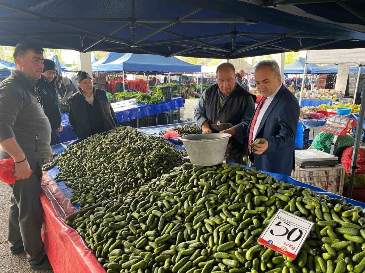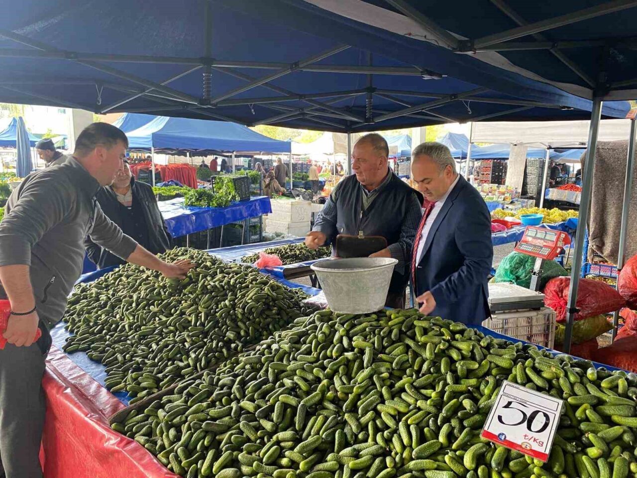 Belediye, vatandaşların taze ve güvenilir gıdaya rahatça ulaşması için pazarlar üzerinde sıkı kontroller gerçekleştiriyor. Belediye Başkan Yardımcısı Turhan Candan, Zabıta Müdürlüğü ekipleriyle birlikte Perşembe Pazarı’nda yapılan denetimlerde tezgahlara dikkatlice bakarak ürünleri inceliyor. Tezgahlardaki ürünlerin fiyat ve etiket eşleşmesini kontrol etmenin yanı sıra hijyen standartlarına uyulup uyulmadığını da denetliyor.