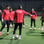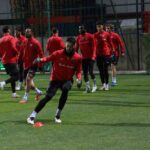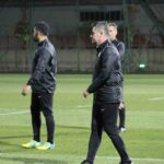 Antrenman, oyuncuların ısınma hareketleri ve koordinasyon çalışmalarıyla başladı. Kırmızı-siyahlı ekip, daha sonra gruplar halinde 5’e 2 top kapma ve pas çalışmalarını gerçekleştirdi.