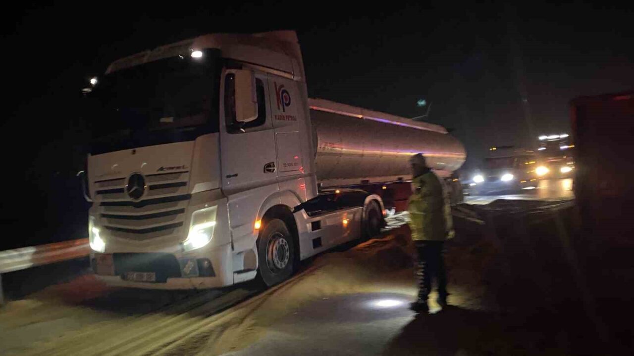 Çorum’da yük taşıyan bir tırın devrilmesi sonucu sürücü yaralandı. Olayın ardından yola dökülen hayvan yemi, trafiği olumsuz etkileyerek yaklaşık 2 kilometre uzunluğunda bir araç kuyruğuna neden oldu.