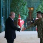 Başkent Ankara’da bulunan çeşitli rütbelerdeki askeri personel de Cumhurbaşkanı Erdoğan’a bayram dileklerini iletmek için törene katıldı. Kamu kurumlarının yöneticileri, büyükelçiler ve uluslararası kuruluşların temsilcileri de Erdoğan’a tebriklerini sundu.