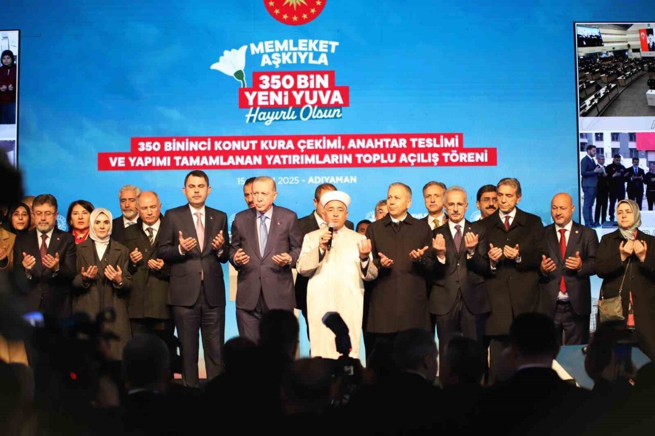 Cumhurbaşkanı Recep Tayyip Erdoğan, Adıyaman’da gerçekleştirilen 350 bininci deprem konutu anahtar teslim töreninde müjdeleyici açıklamalarda bulundu. Erdoğan, “11 ilimizde toplamda 350 bin 178 bağımsız konutun anahtarını hak sahiplerine veriyoruz” ifadelerini kullandı.