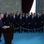 Cumhurbaşkanı Erdoğan, Anıtkabir Özel Defteri’ne şu sözleri yazdı: “Değerli Atatürk, Cumhuriyetimizin 102. yılını kutladığımız bu anlamlı günde, aziz hatıralarınızı, silah arkadaşlarınızı ve tüm şehitlerimizi saygı ve rahmetle anıyorum. Sınırlarımızın ötesinde yaşayan vatandaşlarımızın ve dostlarımızın 29 Ekim Cumhuriyet Bayramı’nı en içten dileklerimle kutluyorum. 102 yıl önce, uğruna canlarını feda eden vatan evlatlarının mirası olan Türkiye Cumhuriyeti’ni, belirttiğiniz hedefler doğrultusunda muasır medeniyetler seviyesinin üzerine çıkarmak için kararlılıkla çalışıyoruz. Ülkemizin küresel arenada itibarını artırmanın yanı sıra, içerde de kesintisiz bir yatırım ve kalkınma seferberliği yürütüyoruz. Hedeflerimize yaklaşırken, şahsım ve hükümetime yönelik artan saldırılara rağmen, aziz milletimizin desteğiyle, büyük ve güçlü Türkiye’yi geleceğe en değerli miras olarak bırakacağız. Ruhunuz şad olsun.”