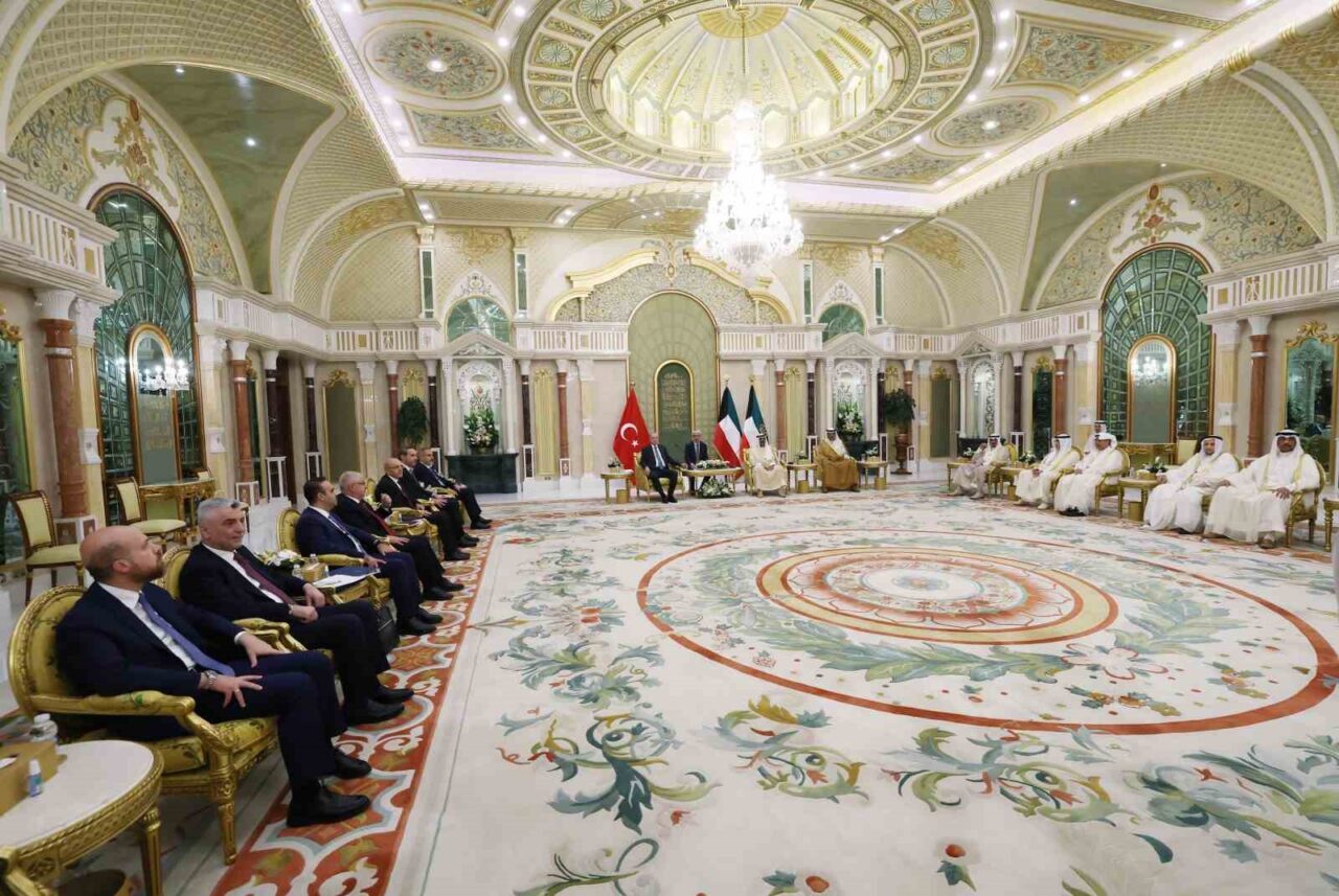 Cumhurbaşkanı Erdoğan’a Kuveyt ziyaretinde eşi Emine Erdoğan’ın yanı sıra Dışişleri Bakanı Hakan Fidan, Enerji ve Tabii Kaynaklar Bakanı Alparslan Bayraktar, Hazine ve Maliye Bakanı Mehmet Şimşek, Millî Savunma Bakanı Yaşar Güler, Sanayi ve Ticaret Bakanı Mehmet Fatih Kacır ve Ticaret Bakanı Ömer Bolat da eşlik ediyor. Bu önemli ziyaretin, Türkiye-Kuveyt ilişkileri açısından yeni bir döneme kapı aralaması bekleniyor.
