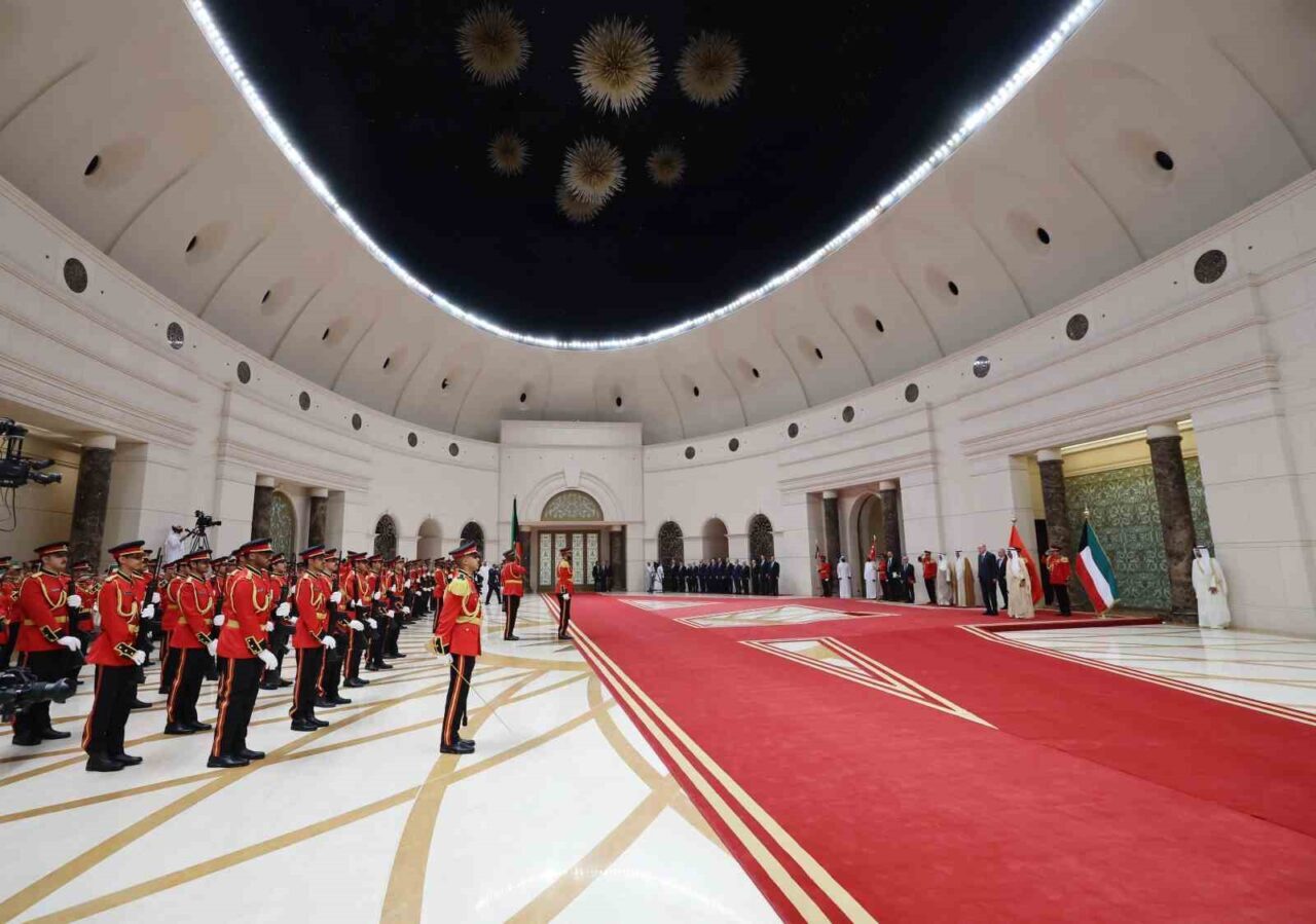 Cumhurbaşkanı Erdoğan, Kuveyt Uluslararası Havalimanı’na iniş yaptığında Kuveyt Emiri Meşal el-Ahmed el-Cabir es Sabah tarafından resmi bir törenle karşılandı. Bu önemli anı paylaşan yüzyüze gelenler arasında Kuveyt Bayındırlık Bakanı Dr. Nora Mohammad Al Mashaan, Savunma Bakanı Abdullah Ali Al Sabah, diğer bakanlar, Kuveyt yetkilileri ve Türkiye’nin Kuveyt Büyükelçiliği temsilcileri de yer aldı. Törenin ardından, Erdoğan ve Kuveyt Emiri özel bir görüşmeye geçti.