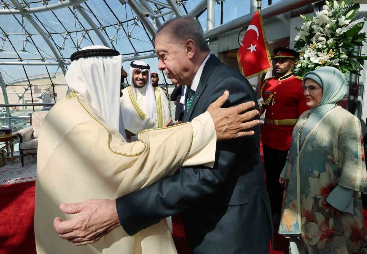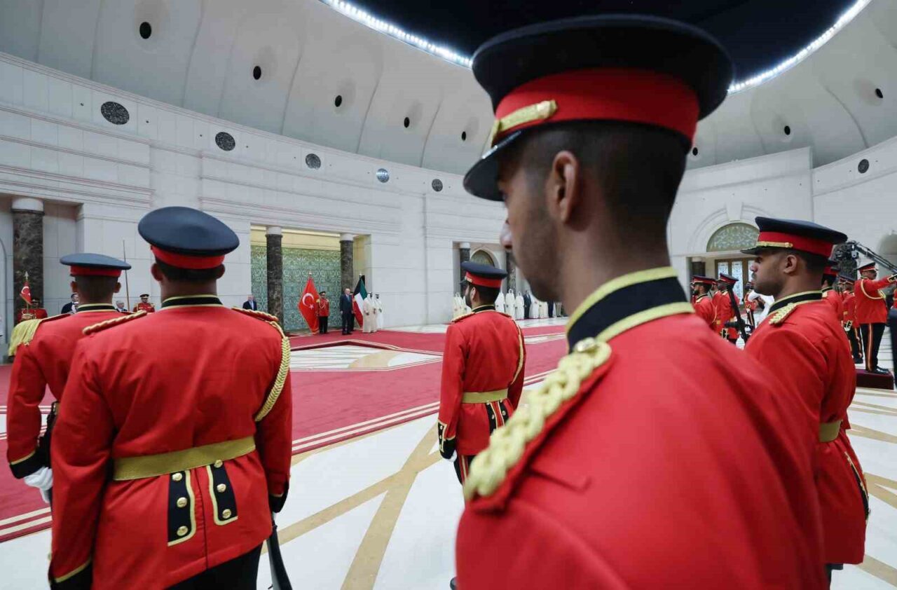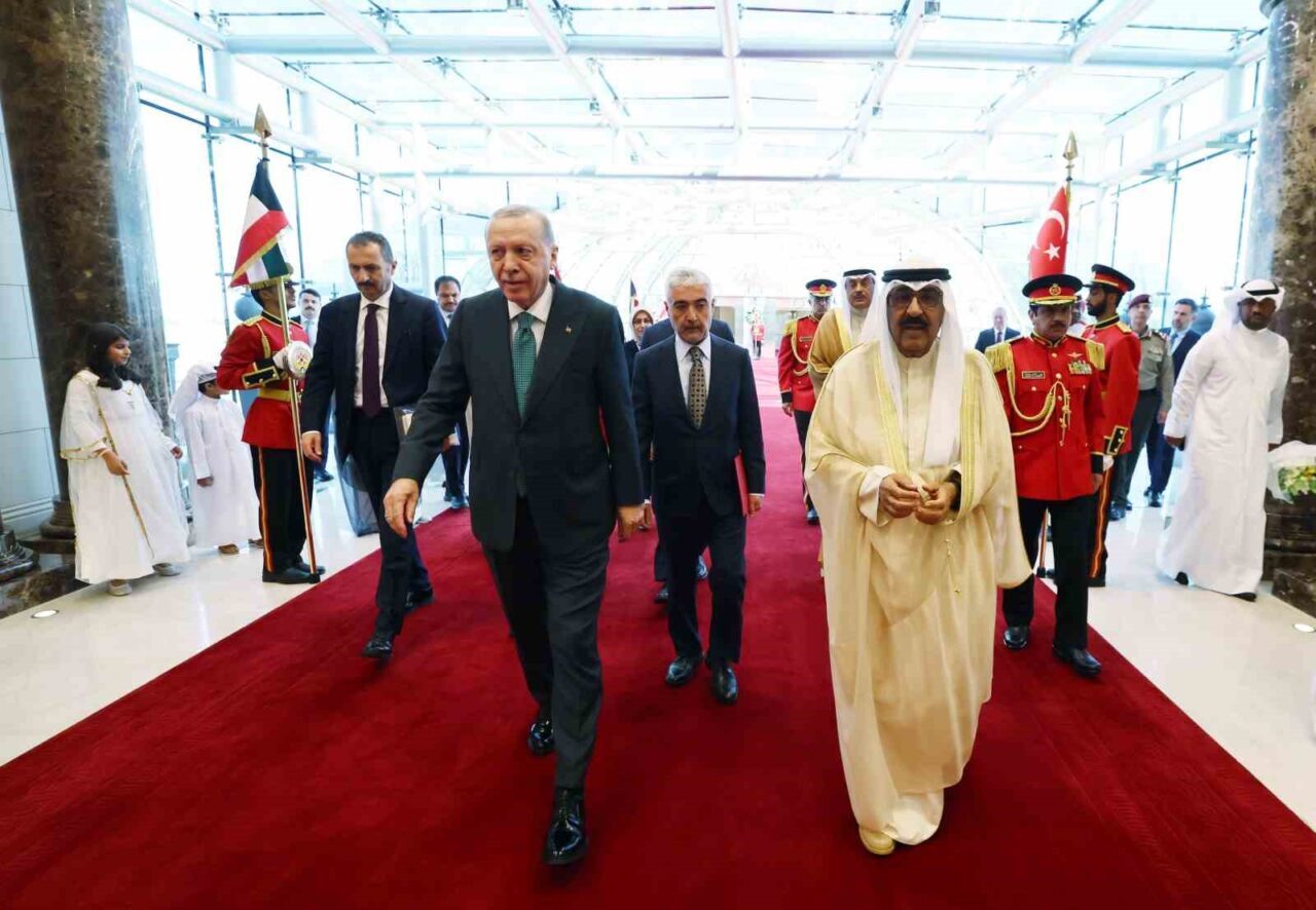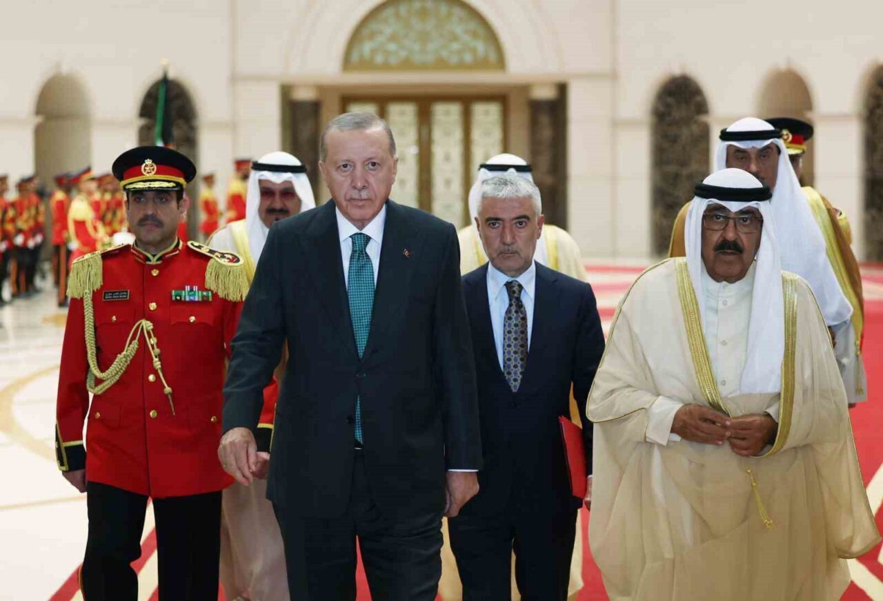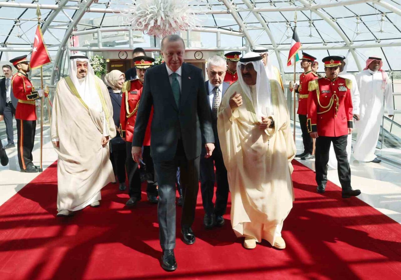 Cumhurbaşkanı Erdoğan, Kuveyt Uluslararası Havalimanı’na iniş yaptığında Kuveyt Emiri Meşal el-Ahmed el-Cabir es Sabah tarafından resmi bir törenle karşılandı. Bu önemli anı paylaşan yüzyüze gelenler arasında Kuveyt Bayındırlık Bakanı Dr. Nora Mohammad Al Mashaan, Savunma Bakanı Abdullah Ali Al Sabah, diğer bakanlar, Kuveyt yetkilileri ve Türkiye’nin Kuveyt Büyükelçiliği temsilcileri de yer aldı. Törenin ardından, Erdoğan ve Kuveyt Emiri özel bir görüşmeye geçti.